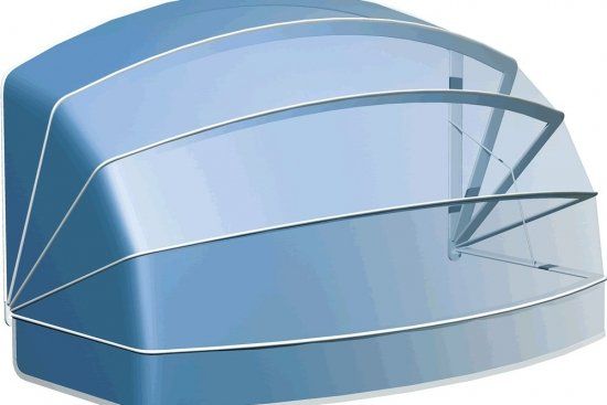 La tecnica di costruzione le permette di raggiungere forme di qualsiasi curvatura anche in dima, in tal modo possono dare forma allo spazio disegnando ovoidali o ellittiche. Dimensioni massime: larghezza 6,00m e sporgenza 1,80 m. La verniciatura è avorio, bianca e grigia di serie.